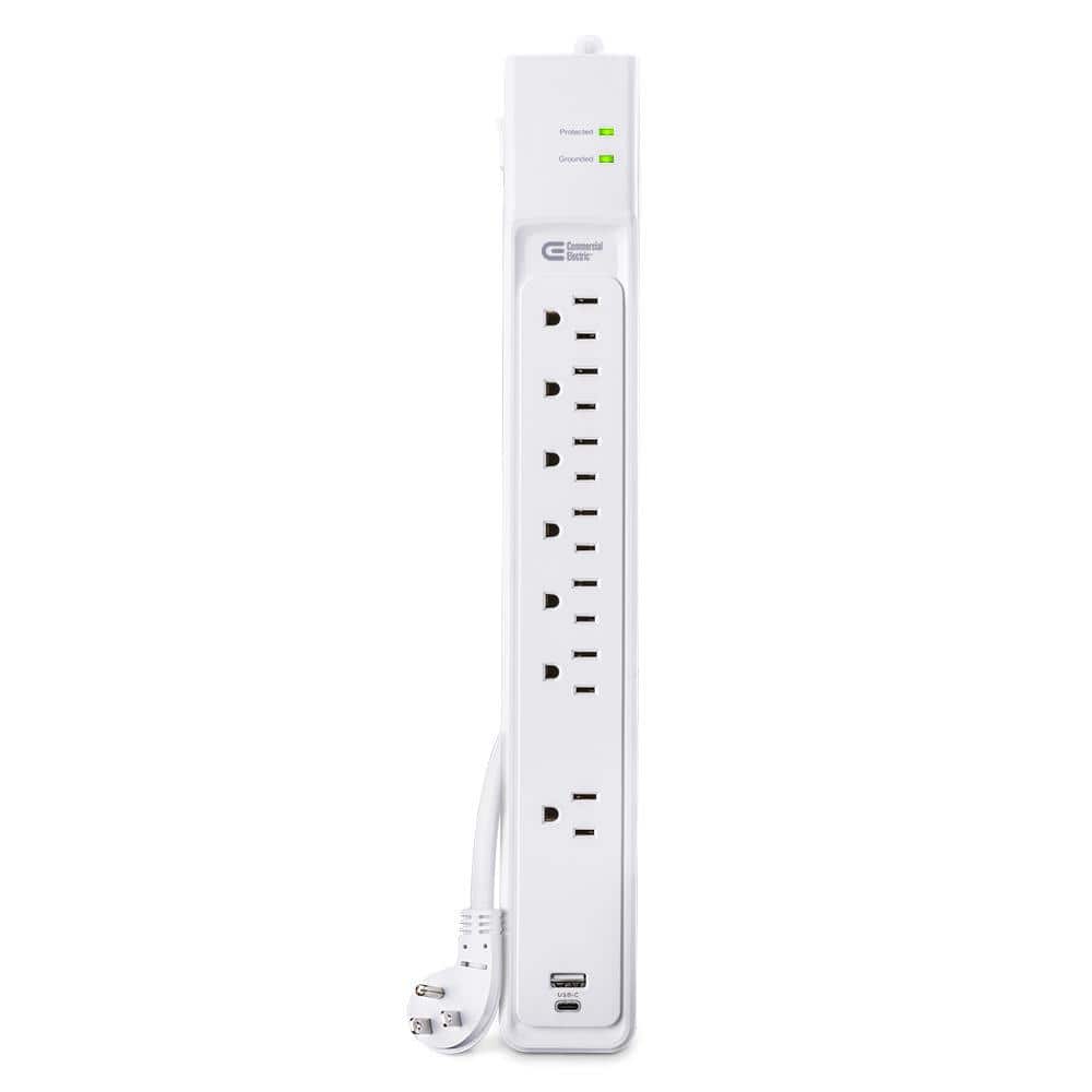 6 ft. 7-Outlet Surge Protector With USB In White