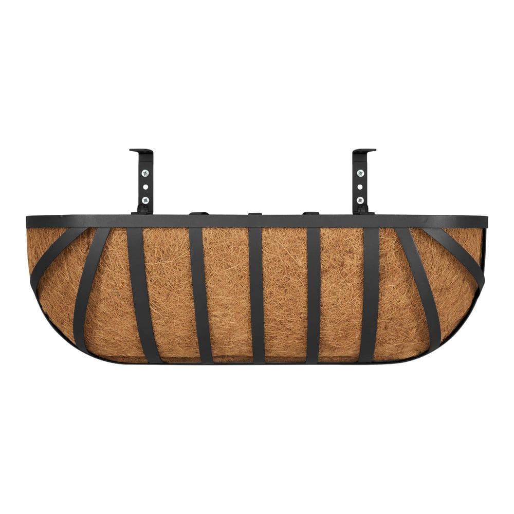 English Small Black Metal Trough Planter With Coco Liner (24 in. L X 7.5 in. W X 8 in. H) HD750030-001